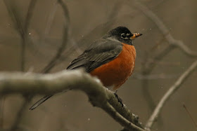 Finally a nice mix between the classic sign of spring, a robin... with snow falling.