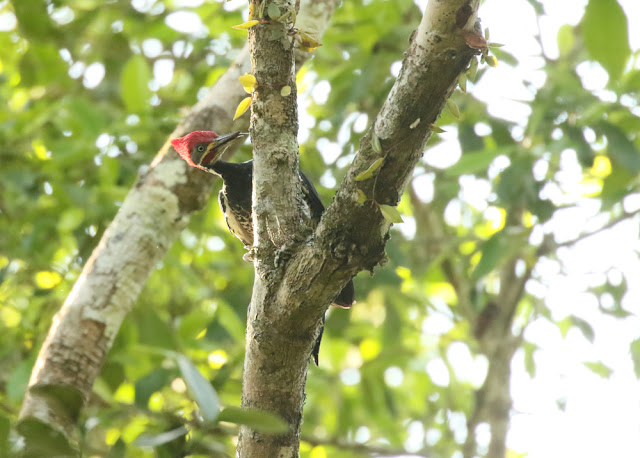 Crane Hawk is a bird that's been theoretically possible on most trips I've taken that reached lowlands in the tropics (heck there's at least one record for S Texas), and the contrasting white underwing comma is pretty unique (though I was once fooled by a Yellow-headed Caracara), so it's a bird that's been on the wish list so long that they kind of felt like a myth. But the myth appeared overhead (and a second one did about 20 minutes later as it turned out) so I was pretty happy.Blue-and-yellow Macaw also generally makes me pretty happy.